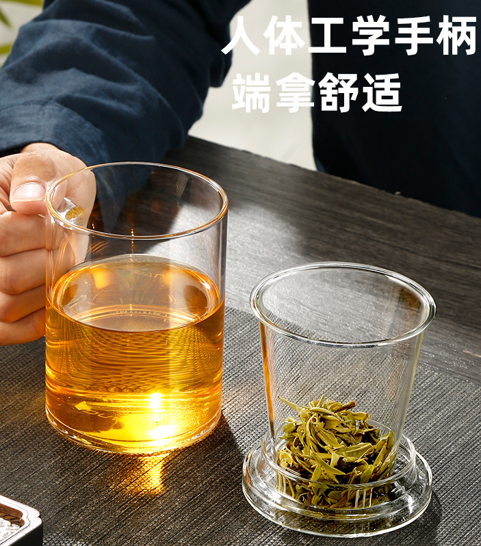 富光玻璃杯茶杯男女办公带把花茶杯茶水分离过滤泡茶杯子家用水杯