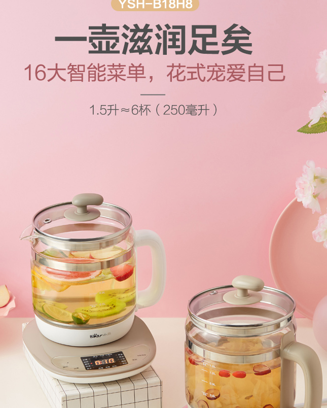 小熊养生壶全自动玻璃多功能电热花茶壶家用养身煮茶器办公室小型