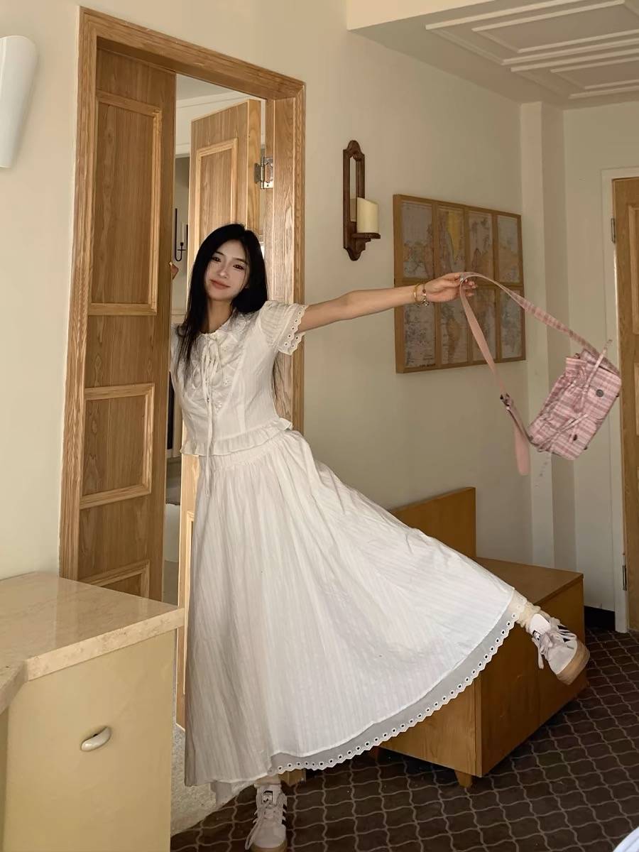 明天穿什么U温柔风肌理感棉麻套装女夏季初恋白衬衫半身裙两件套