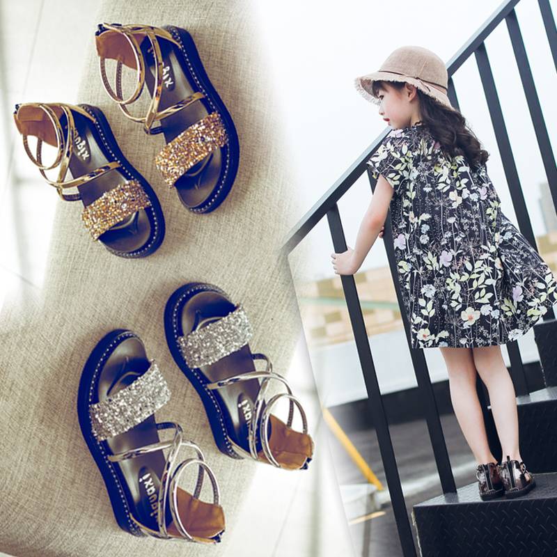女童凉鞋2018新款韩版夏季软底小女孩公主鞋儿童凉鞋女软底罗马鞋