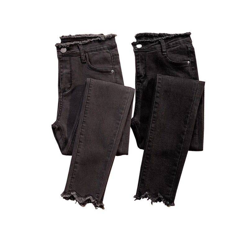 2018新款黑色牛仔裤高腰显瘦九分小脚裤