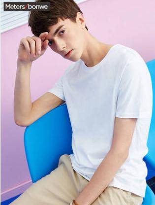 美特斯邦威白色短袖t恤男夏季休闲纯色打底衫男潮流纯棉透气衣服
