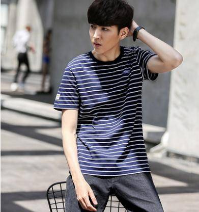唐狮t恤男短袖条纹2018夏季青年圆领半袖体恤打底衫修身潮流男装
