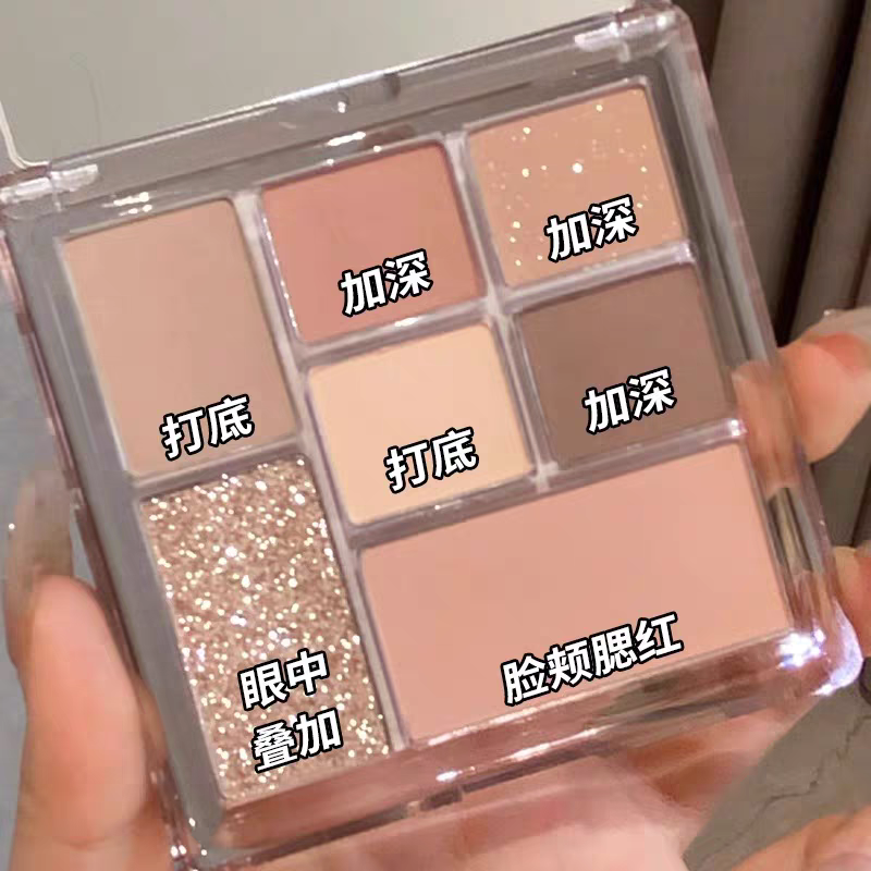 everbab素哑六色眼影盘哑光大地色便携彩妆腮红高光修容一体盘