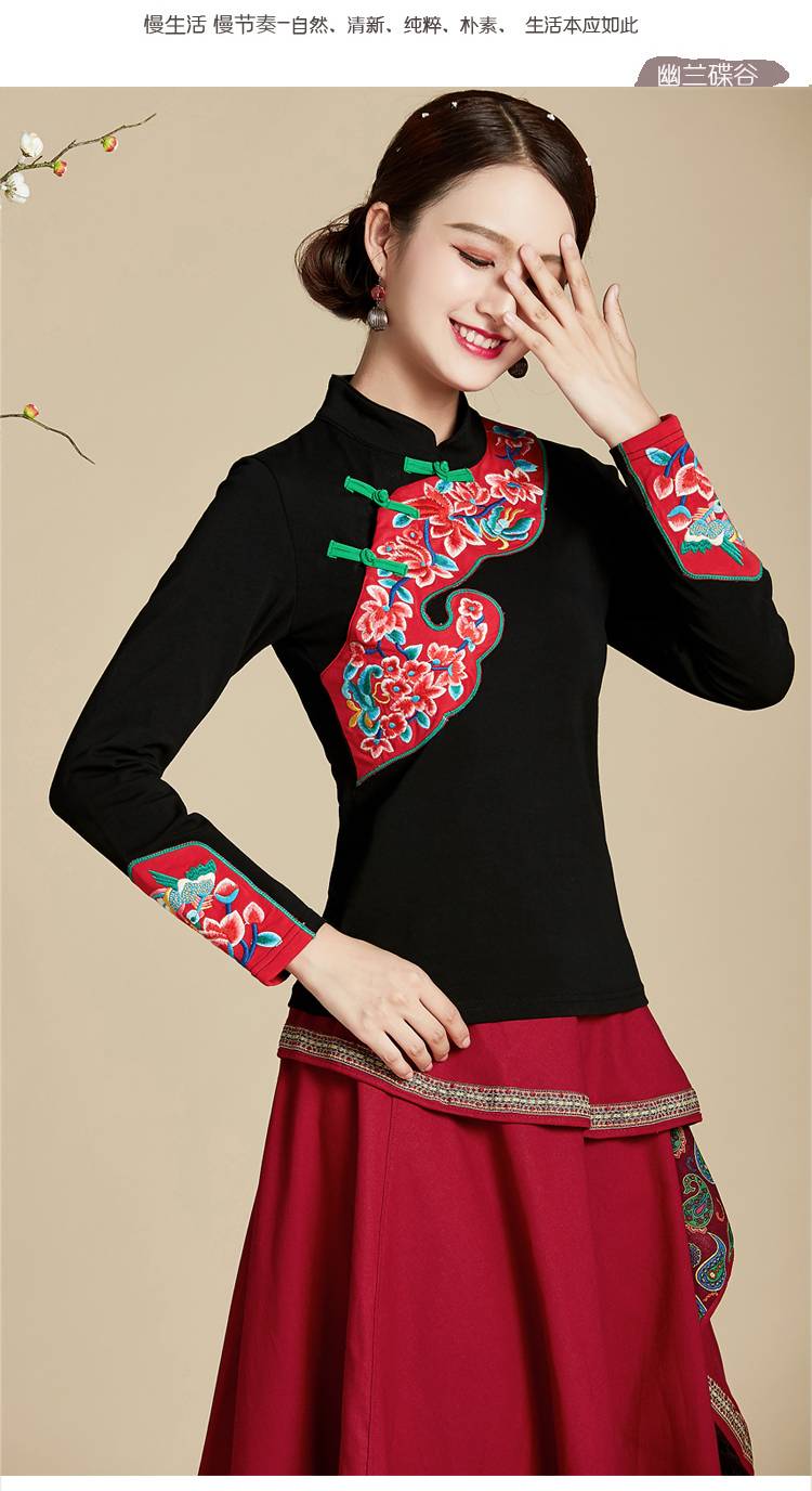 云南民族风女装t恤秋冬季大码长袖复古丽江中国风唐装刺绣女上衣