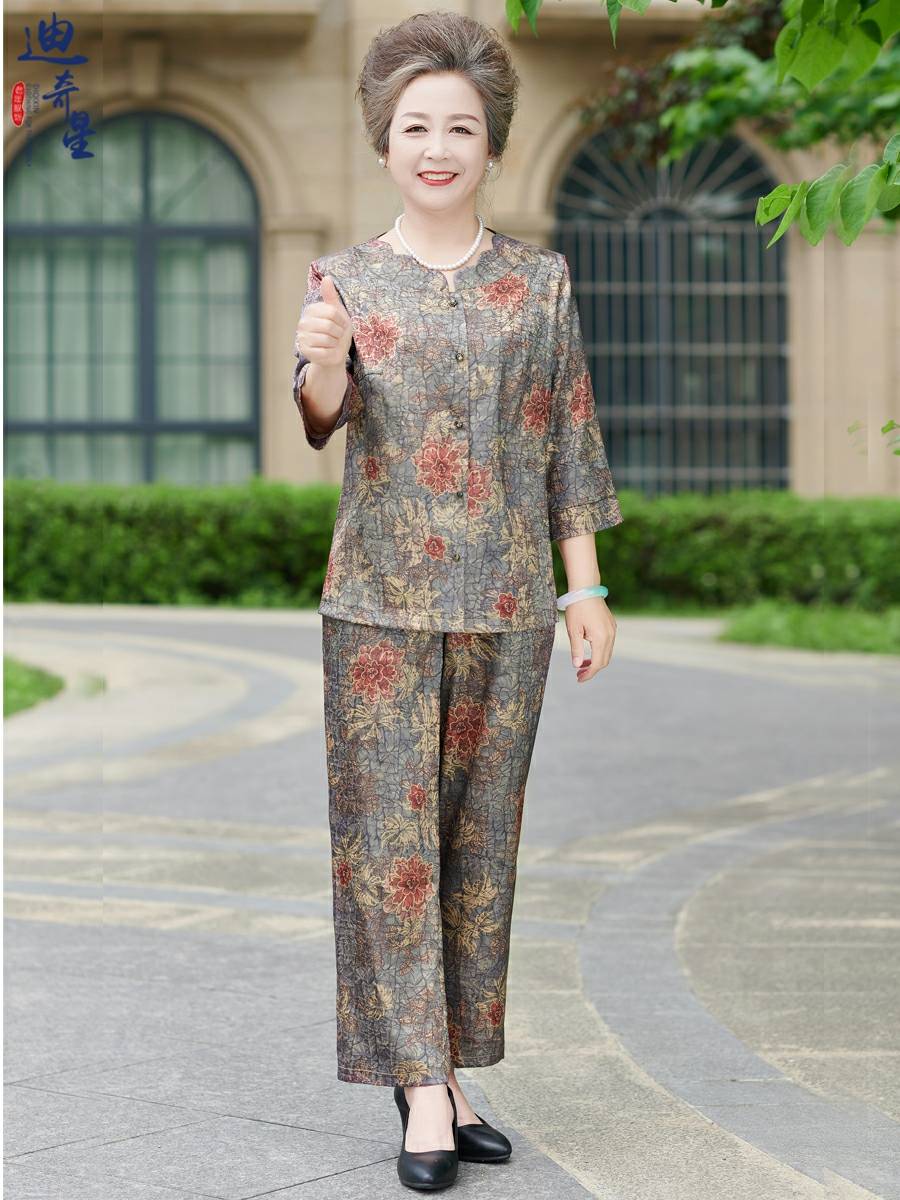 中老年人夏装女奶奶装短袖套装老妈夏季老人衣服衬衫老太太70岁80