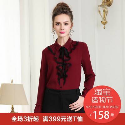 早秋新款真丝衬衫女装2018墨绿色长袖桑蚕丝上衣修身纯色翻领衬衣
