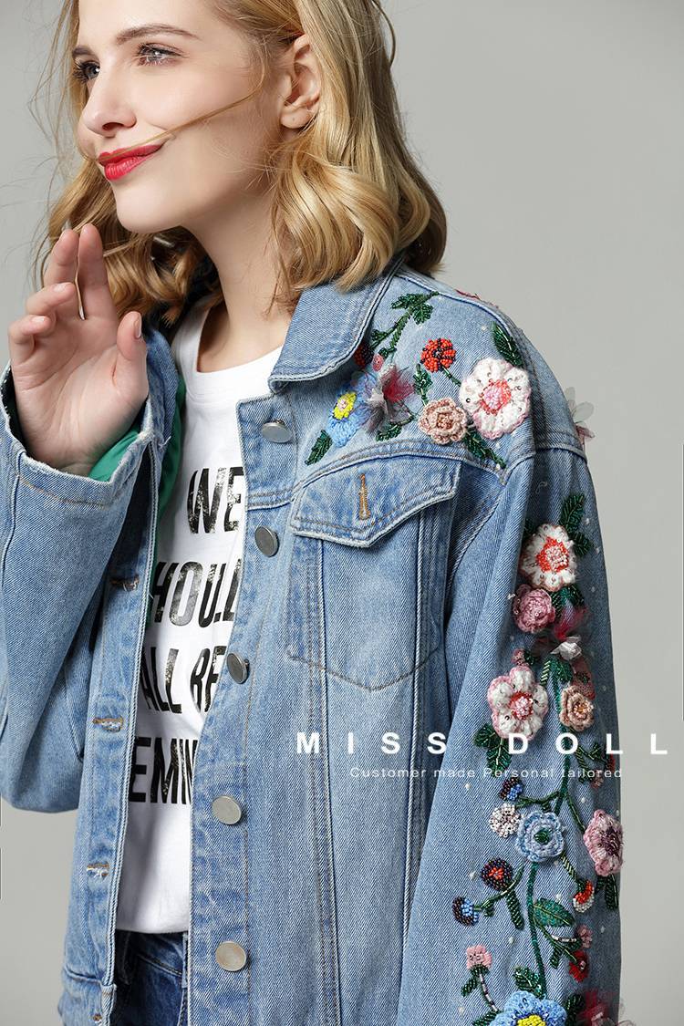 方潇文2018春秋新款街头风涂鸦bf情侣款宽松牛仔短外套女潮流前卫