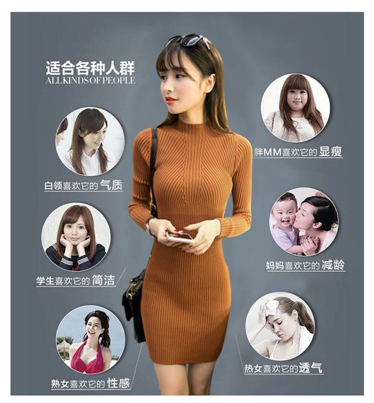秋冬新款半高领中长款套头毛衣女韩版英伦修身长袖包臀针织打底衫