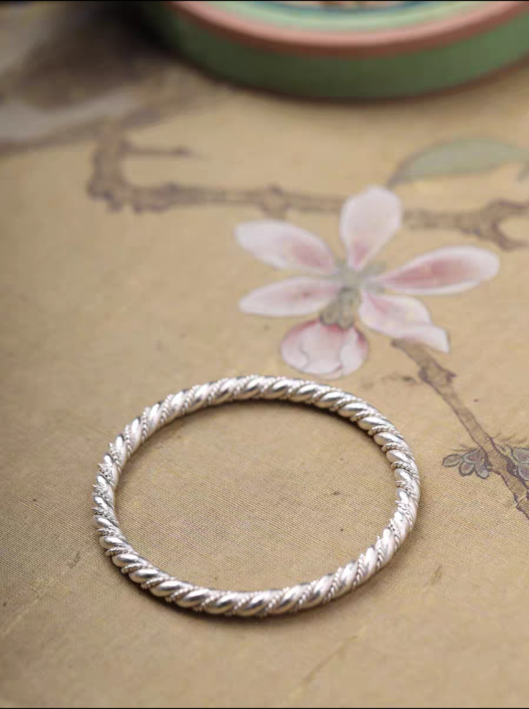 足银999纯手工古法麻花编织银手镯实心绞丝银手环女
