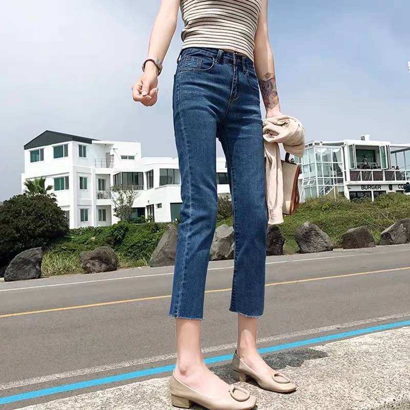 直筒牛仔裤女夏天薄款2021年夏季新款女士烟管高腰显瘦小个zh