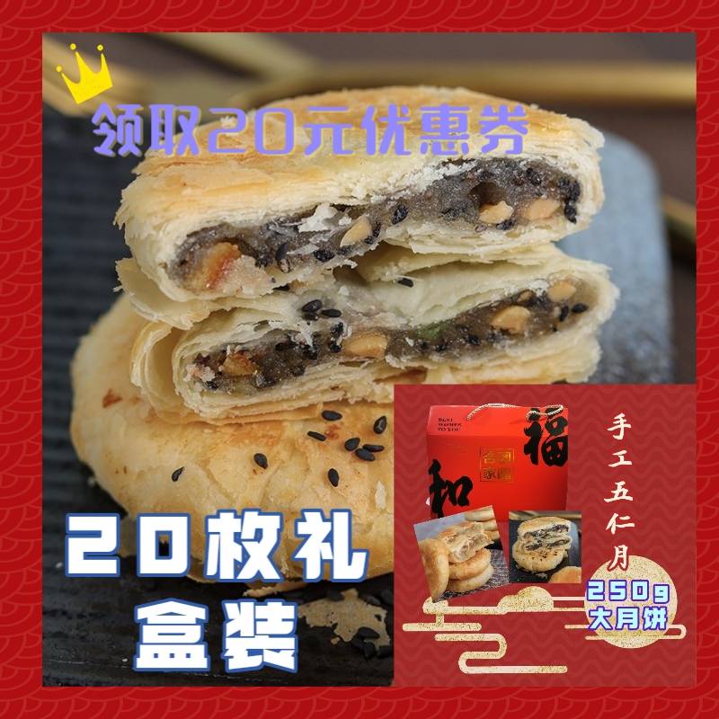 10个装手工芝麻五仁老月饼礼盒