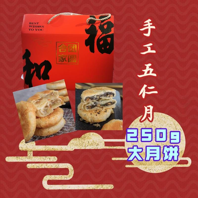 酥皮五仁传统老式手工中秋月饼礼盒装老式250g大月饼点心