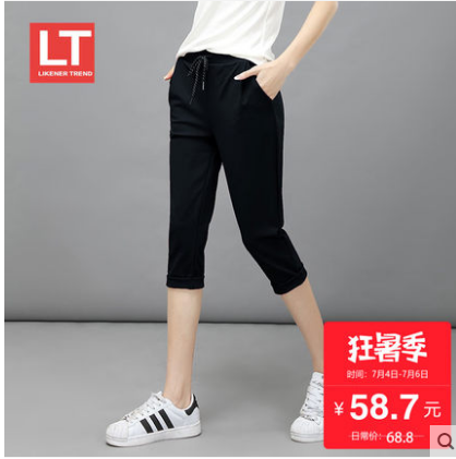 LT学生夏装运动夏季薄款女式弹力中裤休闲黑色七分裤女修身显瘦