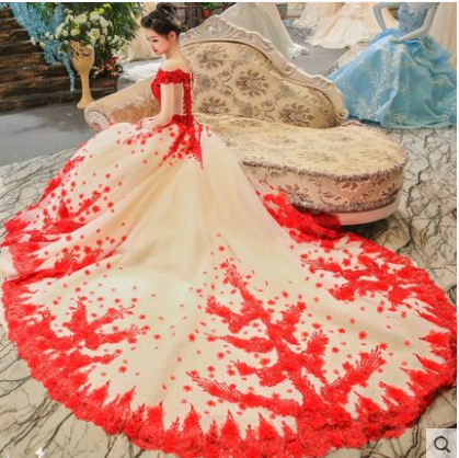 纤丝雅饰2018春季蕾丝花朵新娘演出敬酒晚宴礼服孕妇拖尾婚纱613