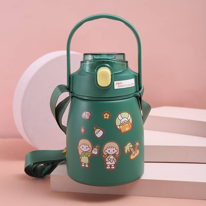 大肚保温杯网红爆款大容量手提运动水壶袋贴纸学生背带弹跳吸管杯