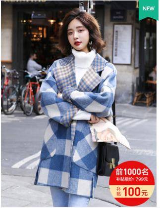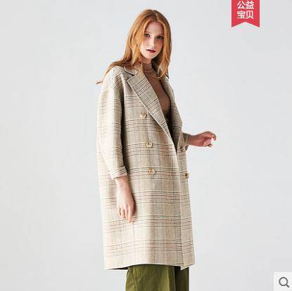 格子双面呢子大衣女2018秋冬季新款流行韩版中长款毛呢外套无羊绒
