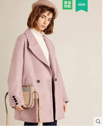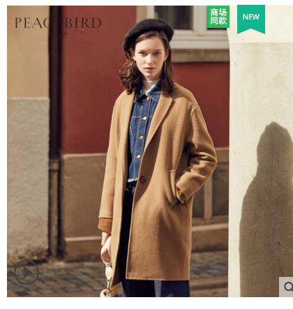 李沁同款太平鸟女装2018秋冬新款刺绣双面羊绒大衣女中长款毛呢