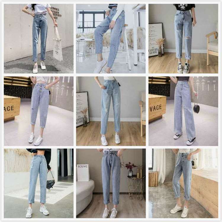 2020春夏新款批发松紧腰高腰牛仔裤女宽松直筒显瘦阔腿长裤