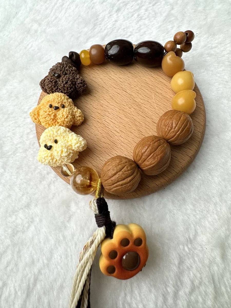 天然黄阿塞小狗 紫杉老檀菩提手串