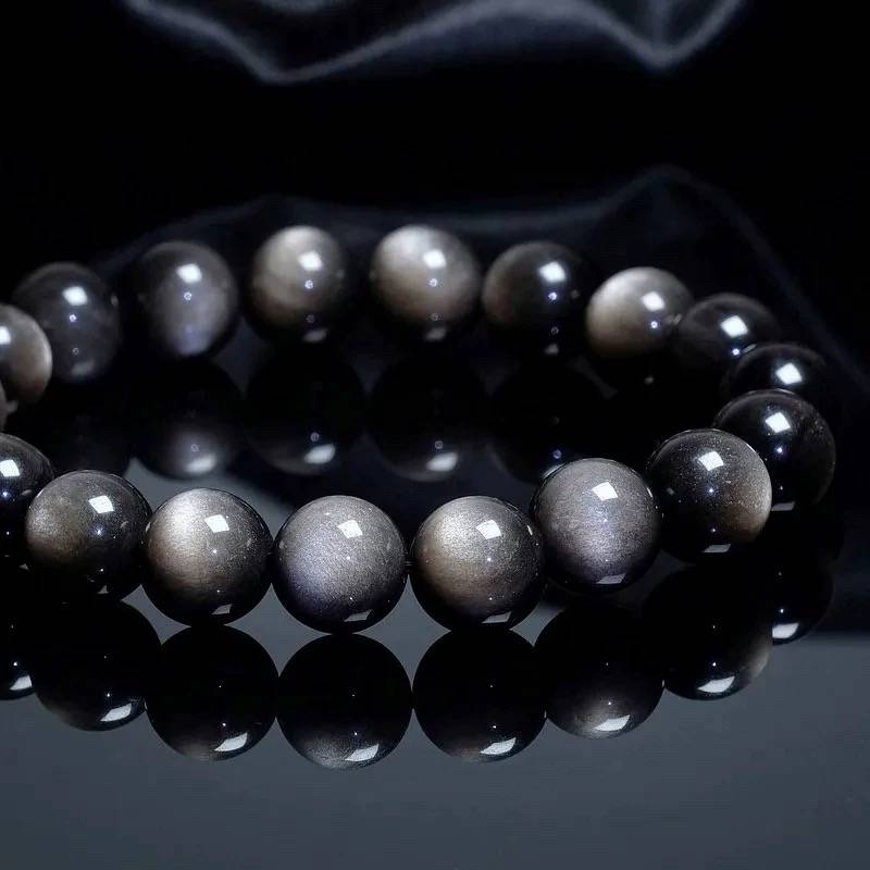 银霜遍地 天然水晶黑曜石手链