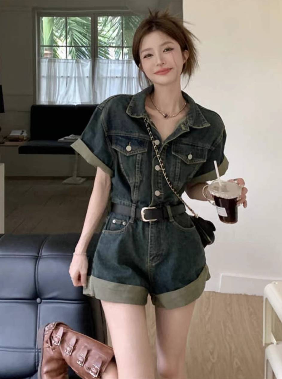牛仔连体裤女新款夏季
