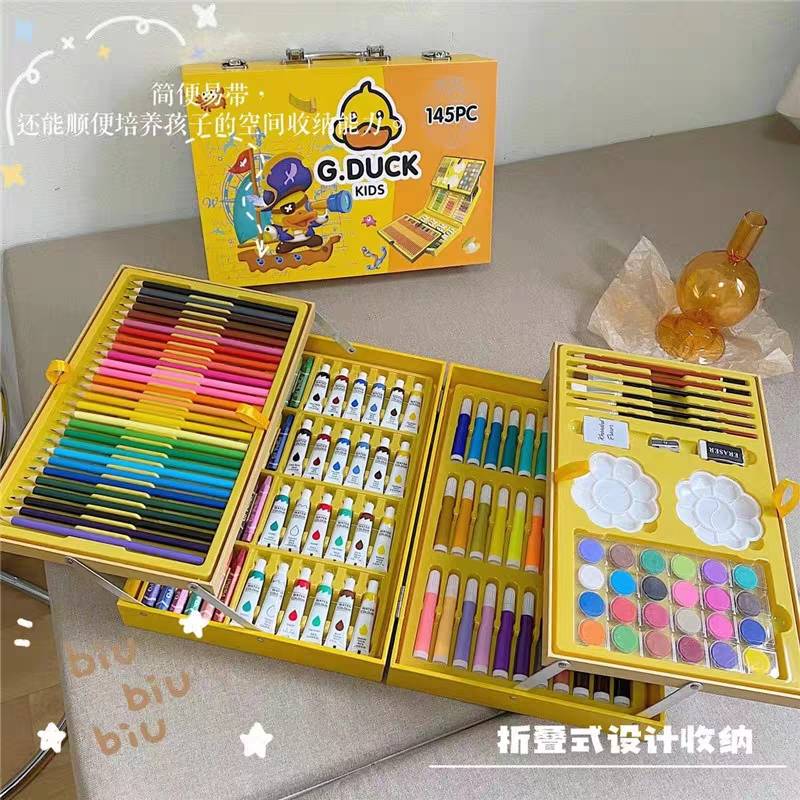 Duck小黄鸭67件套画笔儿童水彩笔绘画工具套装幼儿园生日礼物盒