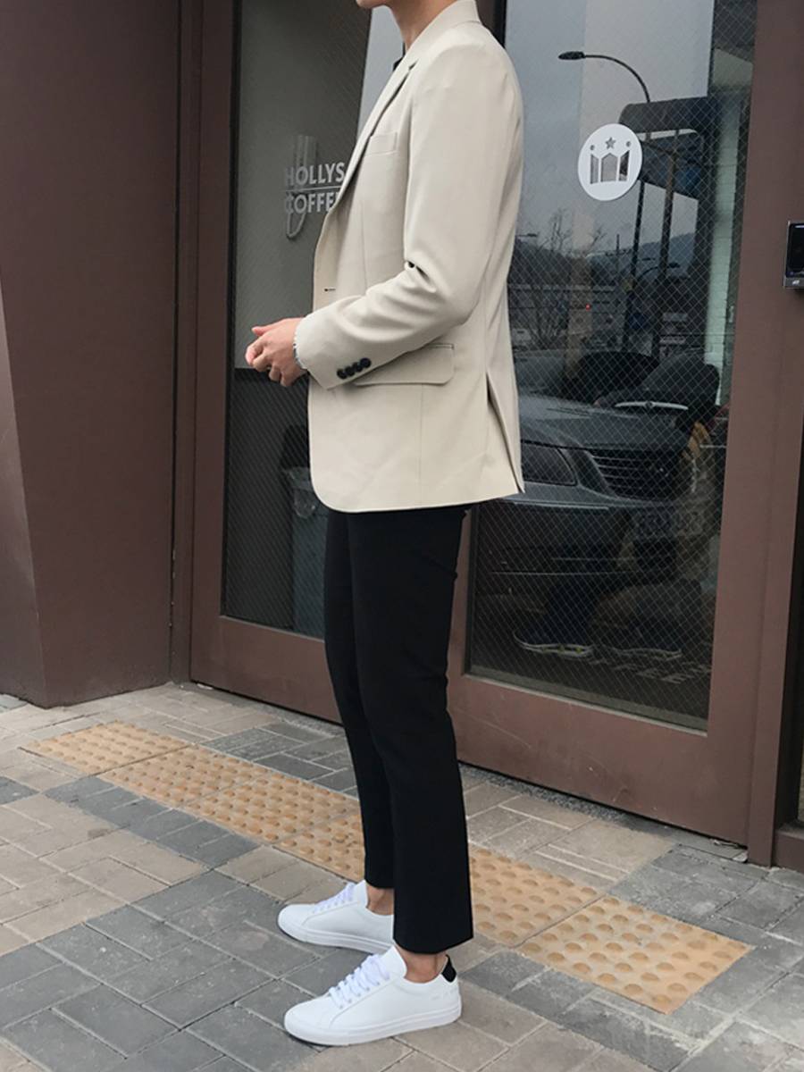 2019春秋季新品单西服外套米色男青年商务休闲韩版修身短款