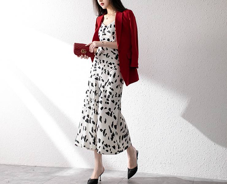 真心美到炸裂动物纹界的清流黑白牛奶纹垂顺吊带裙