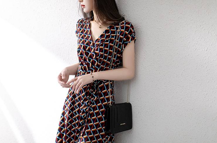 美炸天!!!几何花色 正反异料V领显瘦 CHAO有女人味连衣裙