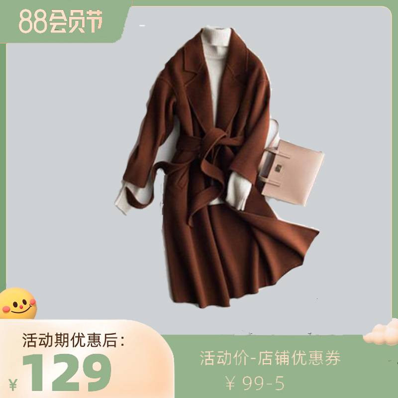 双面羊毛大衣女中长款2020新款赫本风黑色腰带秋冬毛呢外套西装领