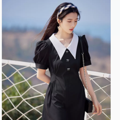 法式复古长袖连衣裙新款早秋韩国黑裙宽松女装