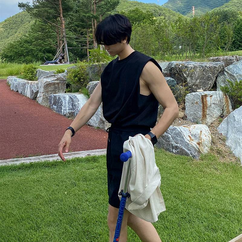 MYQ男装夏季新款背心男百搭无袖t恤个性时尚ins韩版潮流运动坎肩