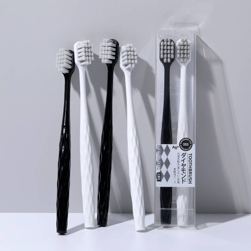 RAOYI银离子抑菌软毛牙刷 2支装钻石纹刷柄情侣宽头牙刷
