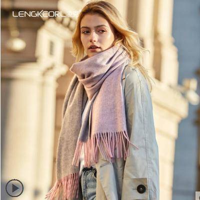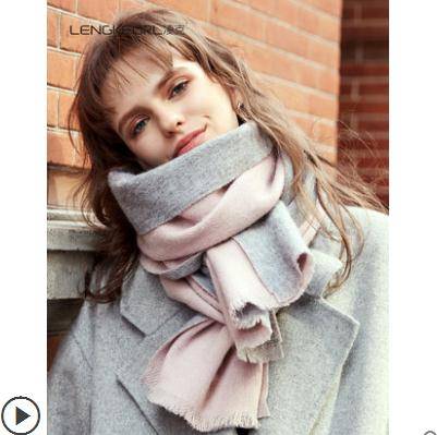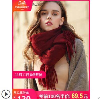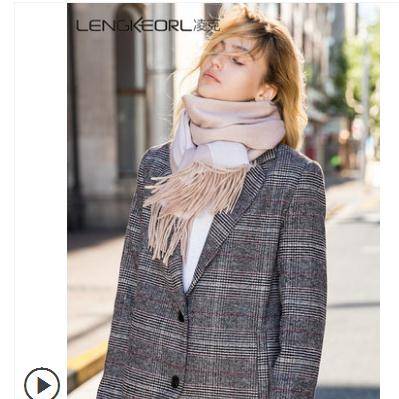 凌克双面羊绒围巾女秋冬季粉色羊毛披肩韩版百搭英伦加厚驼色围脖