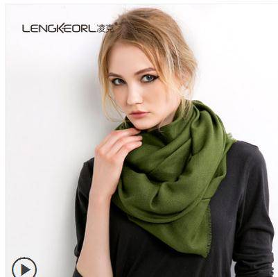 凌克羊毛围巾女秋冬季薄款卡其色百搭披肩银灰色黑色韩版纯色围脖