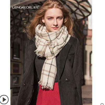 凌克复古格子羊绒围巾女冬季加厚羊毛围脖春秋冬天披肩百搭加长款