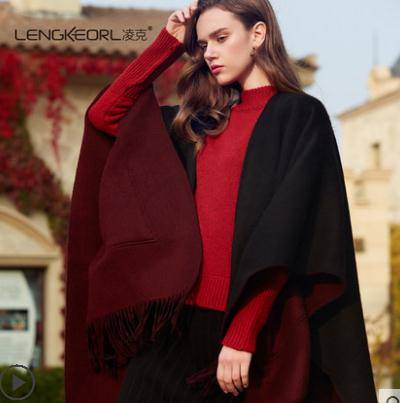 凌克加厚羊毛披肩女百搭披肩斗篷式外套女披风围巾秋冬季两用保暖