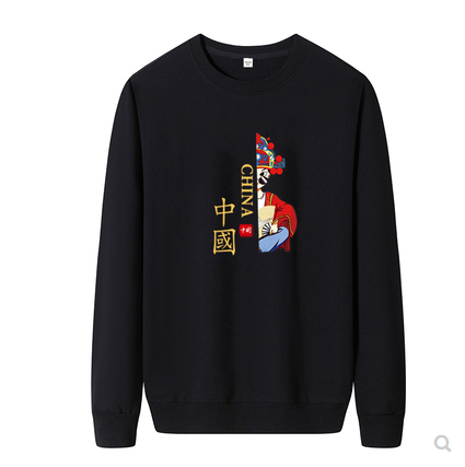 港风潮牌卫衣男圆领无帽印花余文乐纯棉新款外套长袖大码宽松衣服
