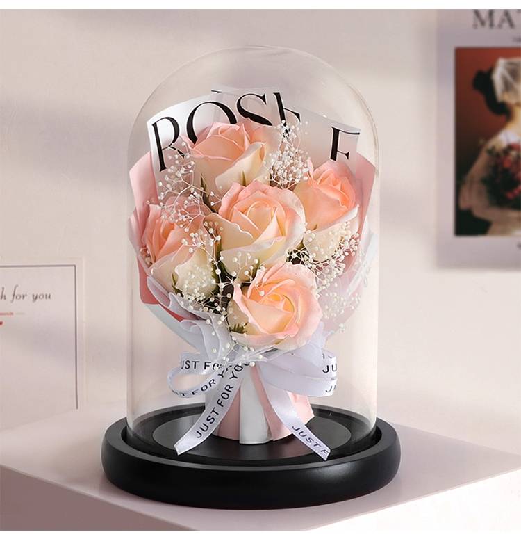永生花玻璃罩玫瑰花花束女生情人节礼物送女朋友男满天星干花摆件