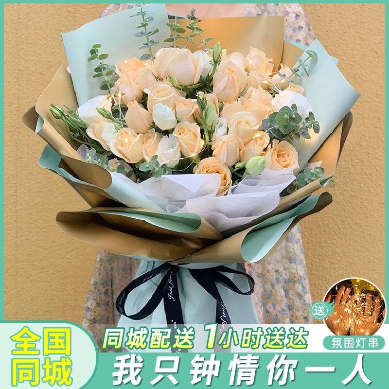全国速递新鲜直发同城直达安徽销量过千香槟玫瑰代写贺卡
