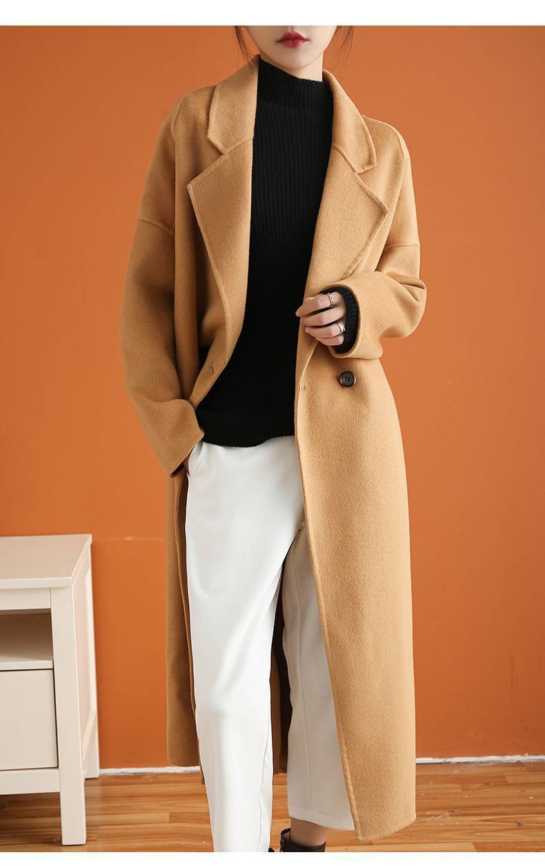 2020秋冬新款女保暖羊毛大衣色羊毛简约文艺毛呢大衣双面呢宽松潮
