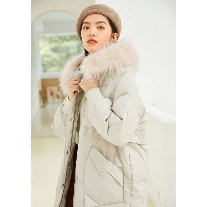 YFL羽绒外套2020冬新款连帽长款加厚毛领小个子羽绒服女