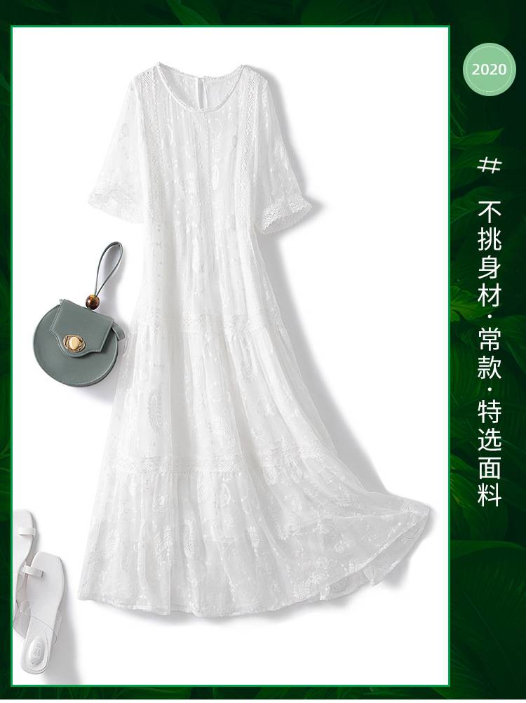 新款女装重工刺绣桑蚕丝中长款气质修身 真丝连衣裙