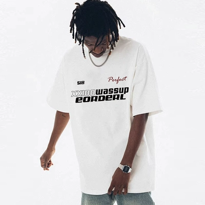 重磅纯棉男生短袖t恤情侣白色印花上衣学生情侣装百搭