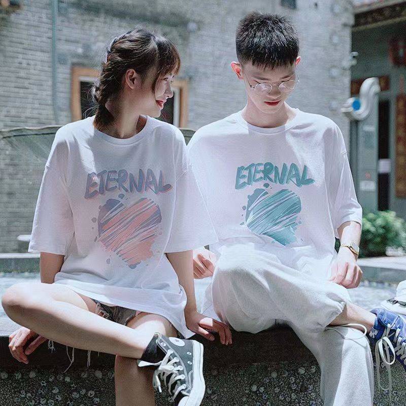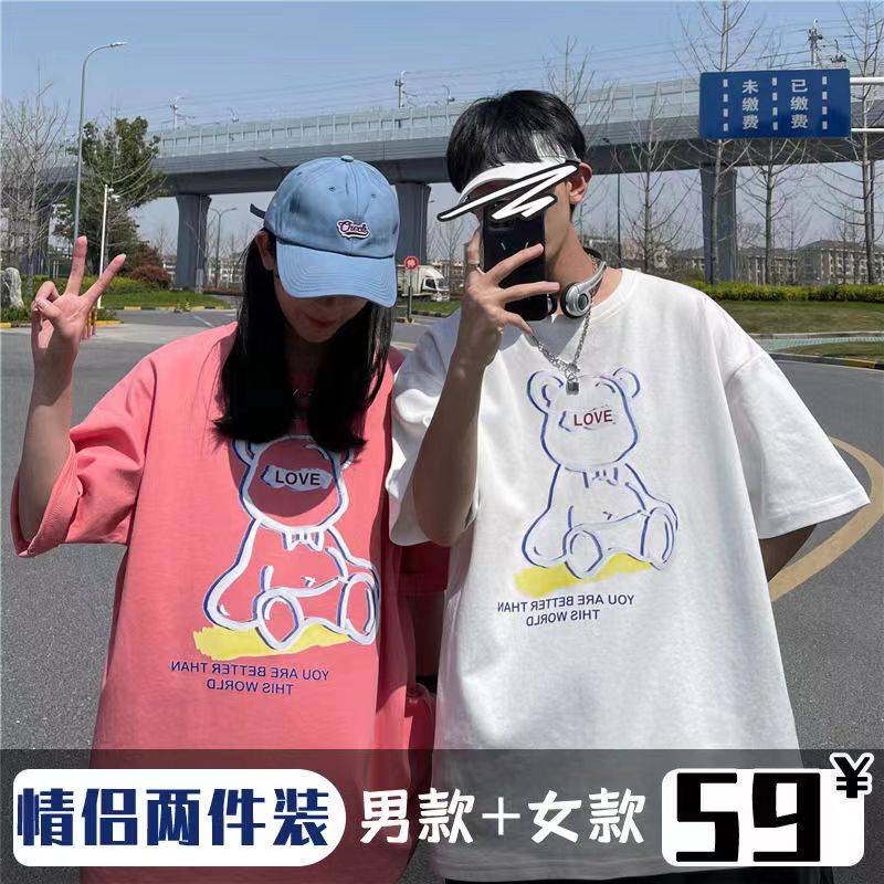 时尚潮流情侣装夏装短袖T恤女2022夏季新款纯棉情侣款