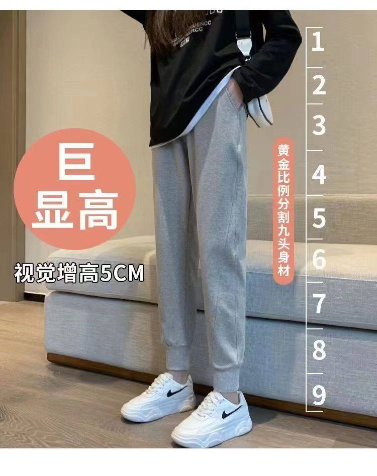 纯棉运动裤女夏季薄款宽松束脚灰色卫裤小个子九分休闲显瘦直长裤