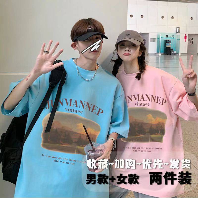 【100%纯棉】夏季装潮流短袖2022款情侣装宽松版落肩T恤时尚