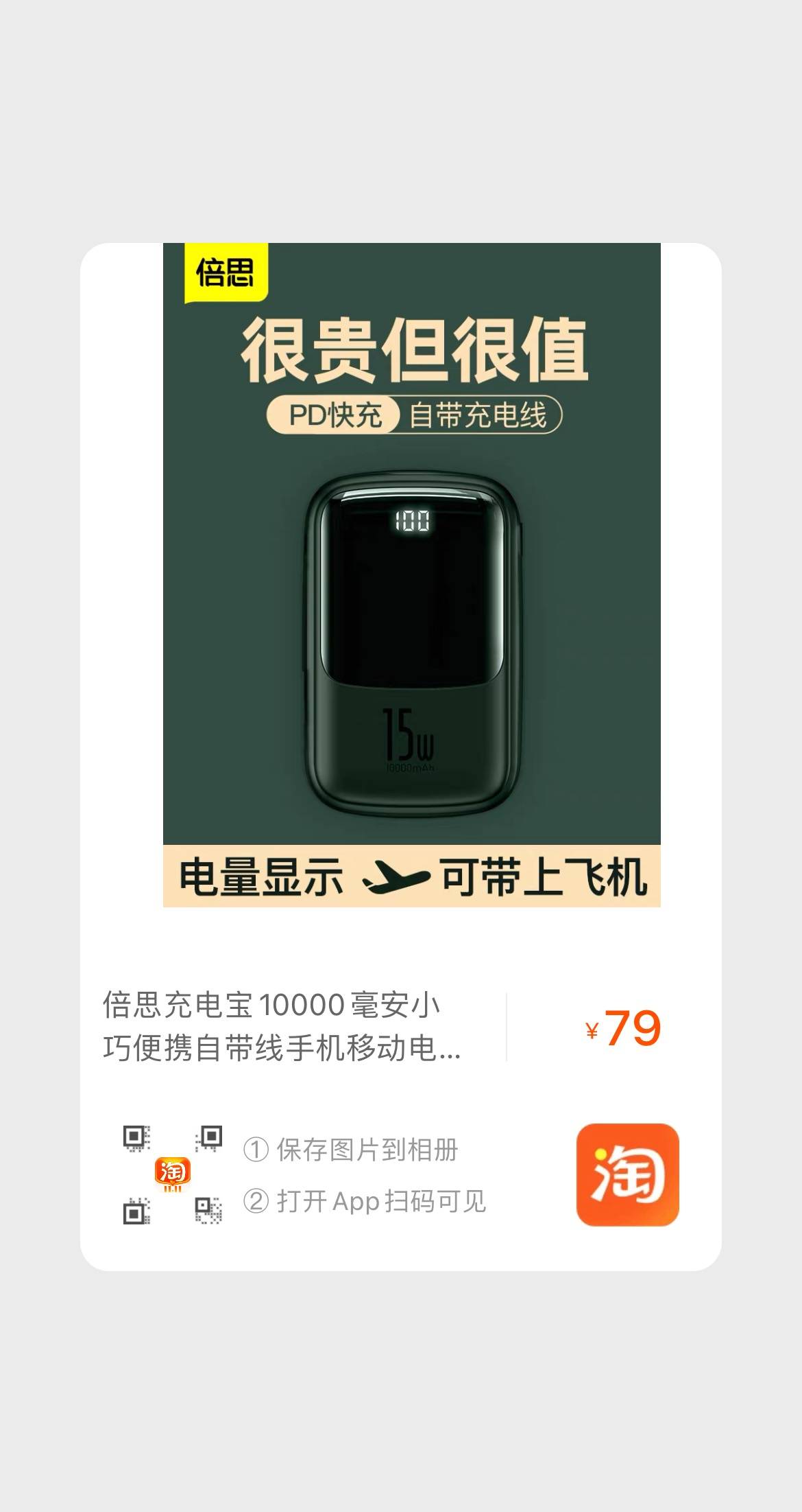 超级充电宝倍思充电宝10000毫安小巧便携自带线手机移动电源专用一万pd快充电宝迷你小型适用于苹果华为