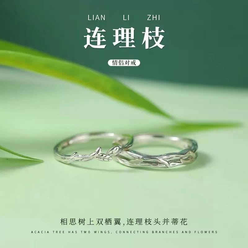 连枝理纯银情侣对戒
